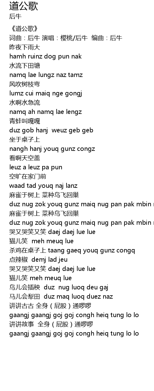 | duz nug zok youq gunz maiq nug pan pak mbin ma lanz | |