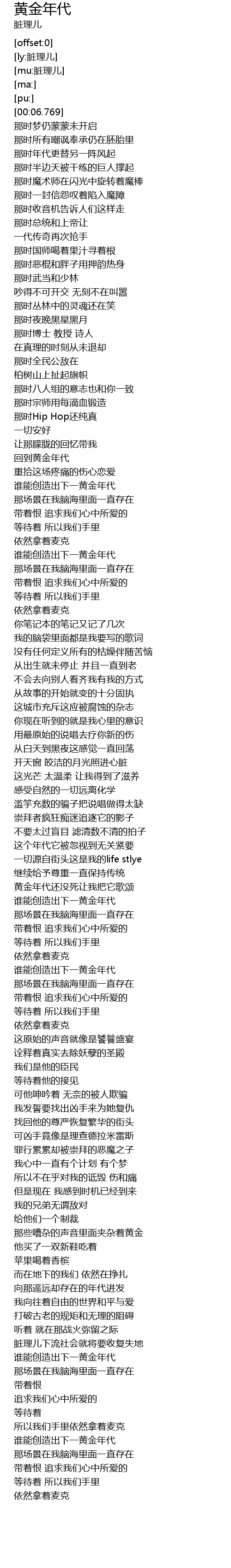 | [01:11.162] | 那时Hip Hop还纯真 |