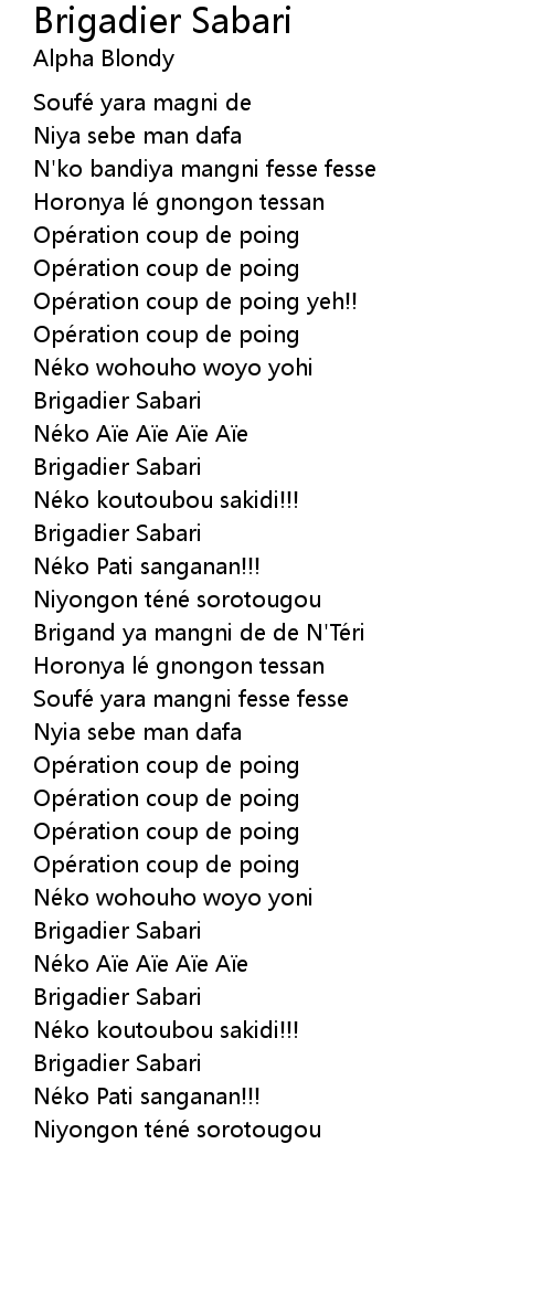 | Brigand ya mangni de de N' Te ri | |