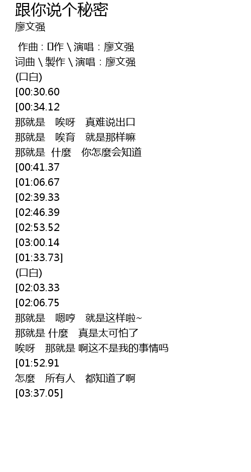 | [00:03.78] | 词曲\製作\演唱:廖文强 |