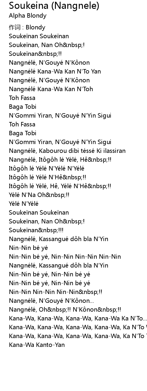 | Nangné lé, Kassangué d h bla N' Yin | |