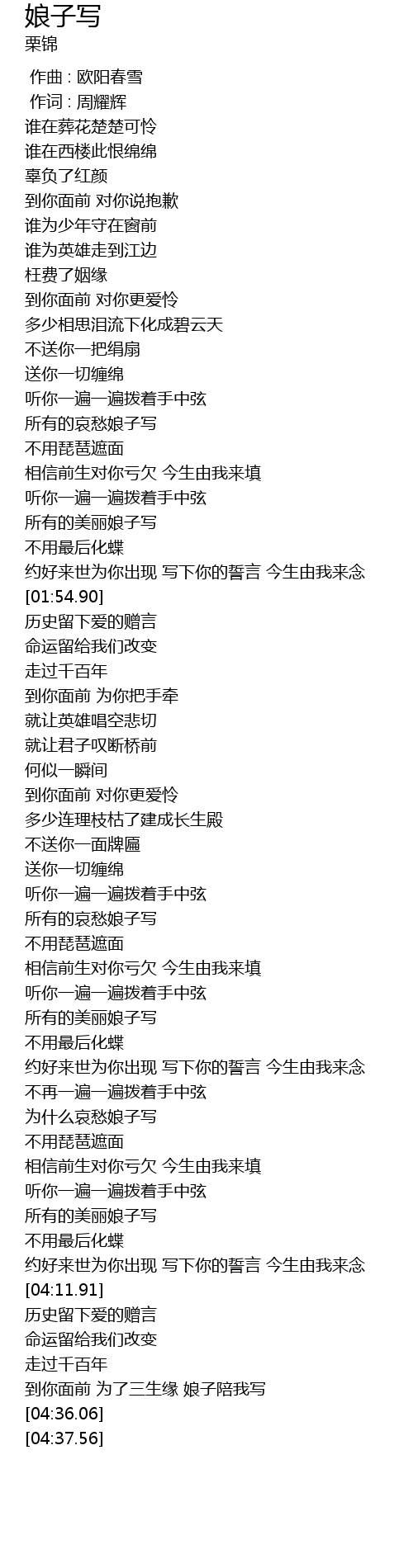 | [04:22.95] | 到你面前 为了三生缘 娘子陪我写 |