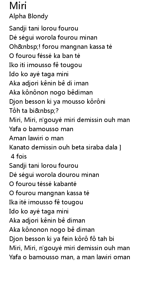 | Miri, Miri, n'gouyé miri demissin ouh man | |