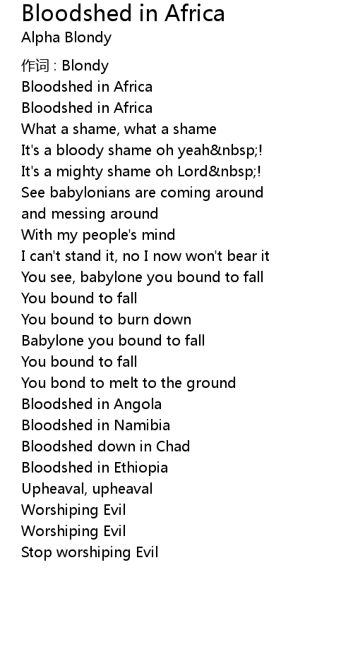 | Song | Bloodshed in Africa |