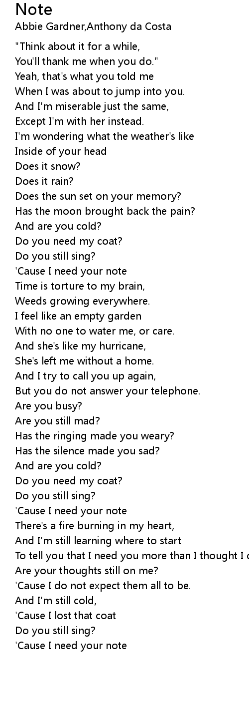 'Cause I need your note