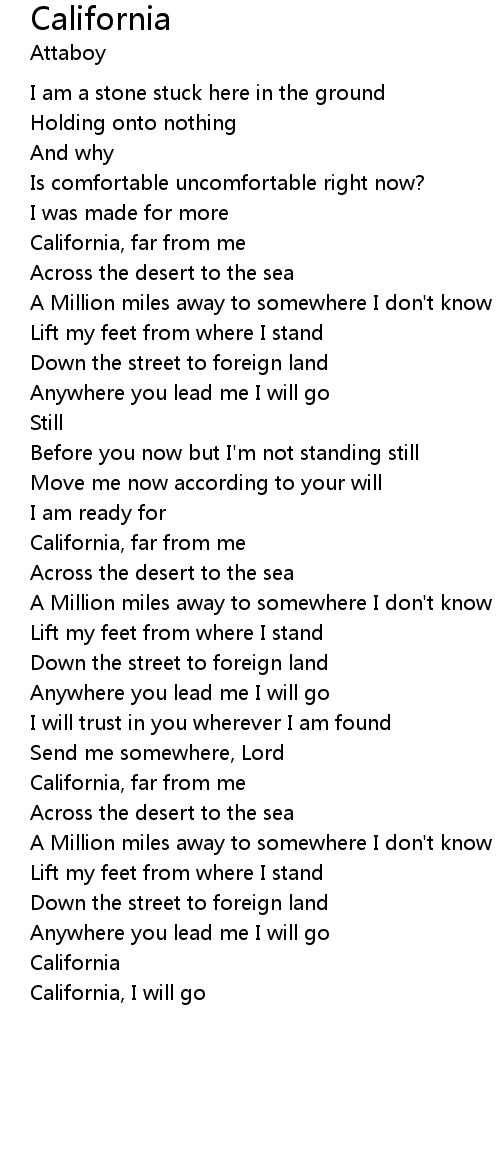 California, I will go |