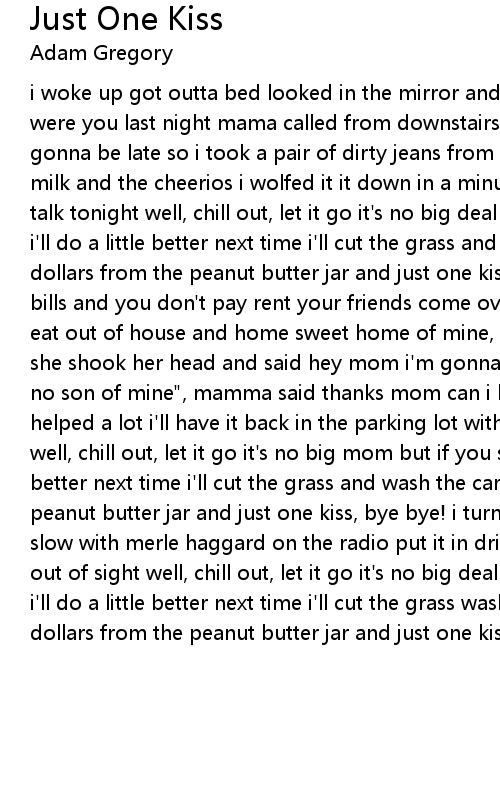 i woke up got outta bed looked in the mirror and my eyes were red thinkin' where were you last night mama called from downstairs you better get running or you're gonna be late so i took a pair of dirty jeans from the laundry pile grabed the milk and the cheerios i wolfed it it down in a minute or so saying we're gonna talk tonight well, chill out, let it go it's no big deal mom but if you say so i'll do a little better next time i'll cut the grass and wash the car for twenty dollars from the peanut butter jar and just one kiss, bye bye! you don't pay the bills and you don't pay rent your friends come over and you let them in then you eat out of house and home sweet home of mine, that's right i looked at mom as she shook her head and said hey mom i'm gonna make my bed well, "you just ain't no son of mine", mamma said thanks mom can i borrow the car our little lak sure helped a lot i'll have it back in the parking lot without a scratch this time well, chill out, let it go it's no big mom but if you say so i'll do a little better next time i'll cut the grass and wash the car for twenty dollars from the peanut butter jar and just one kiss, bye bye! i turned the key and i backed up slow with merle haggard on the radio put it in drive and i let it go squealin' out of sight well, chill out, let it go it's no big deal mom but if you say so i'll do a little better next time i'll cut the grass wash the car for twenty dollars from the peanut butter jar and just one kiss, bye bye! |