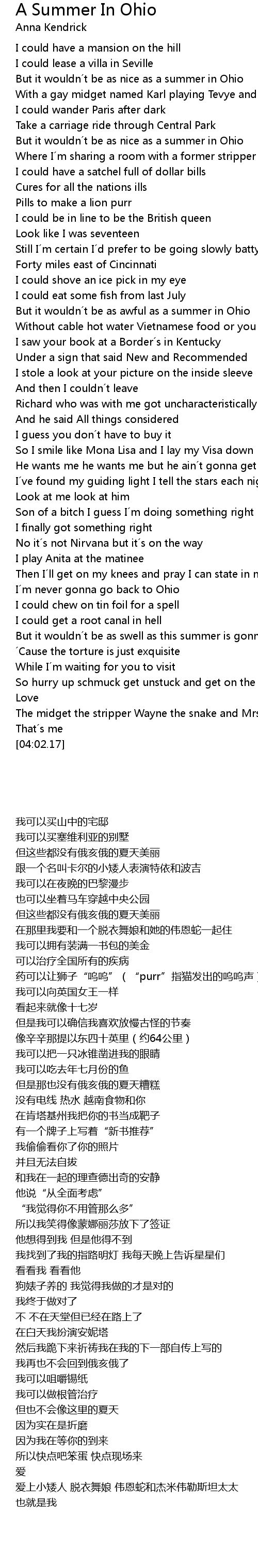 | [00:46.78] | But it wouldn t be as nice as a summer in Ohio |