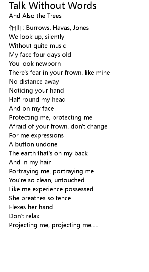 | Song | Talk Without Words |