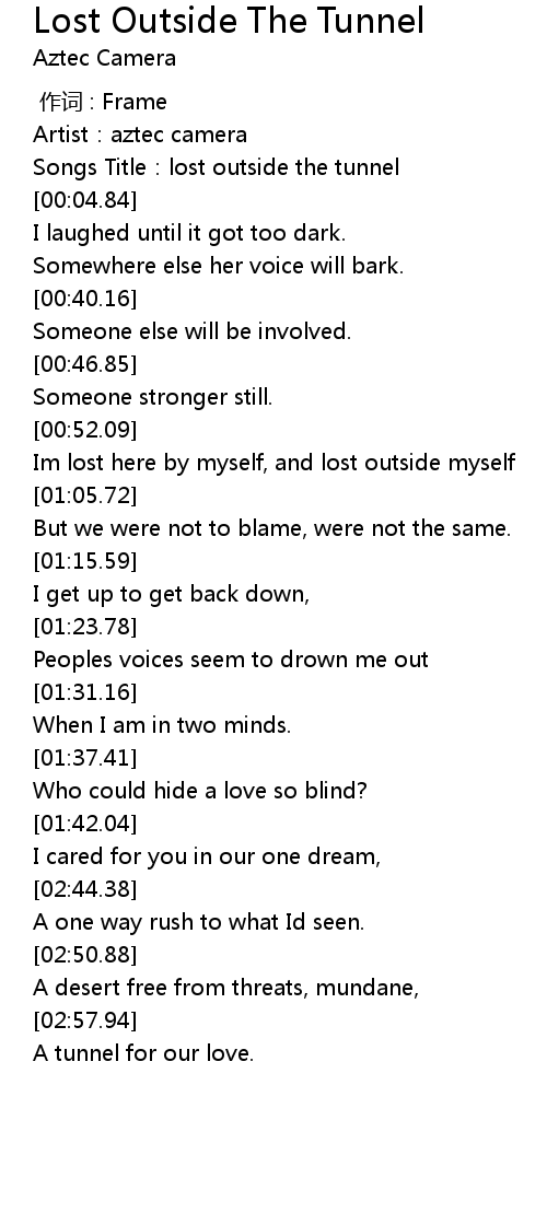 | [00:02.91] | Songs Title: lost outside the tunnel |