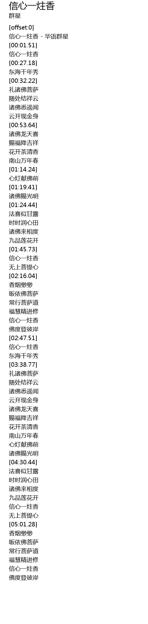 | [00:00.14] | 信心一炷香 - 华语群星 |