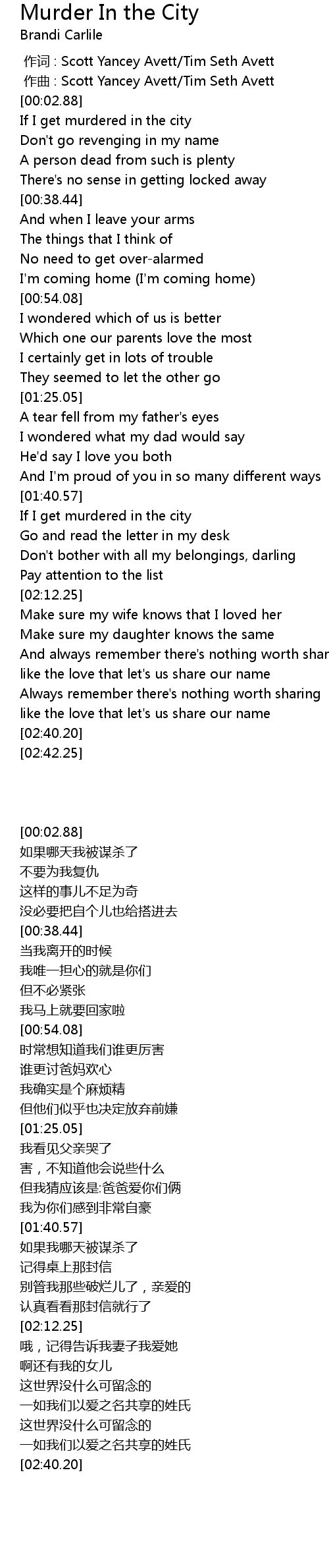 | [01:59.04] | If I get murdered in the city |