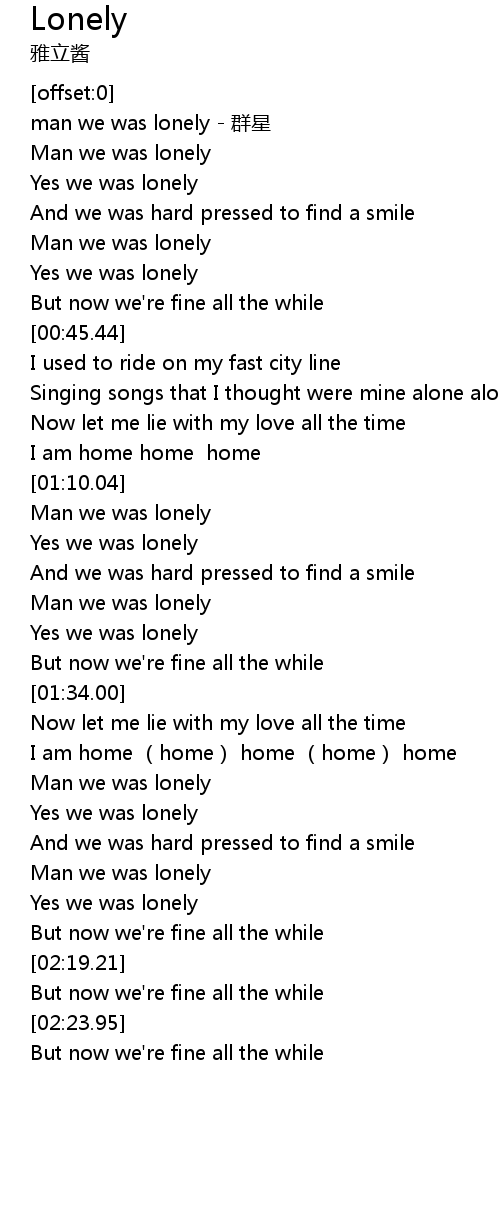 | [00:50.56] | Singing songs that I thought were mine alone alone alone |