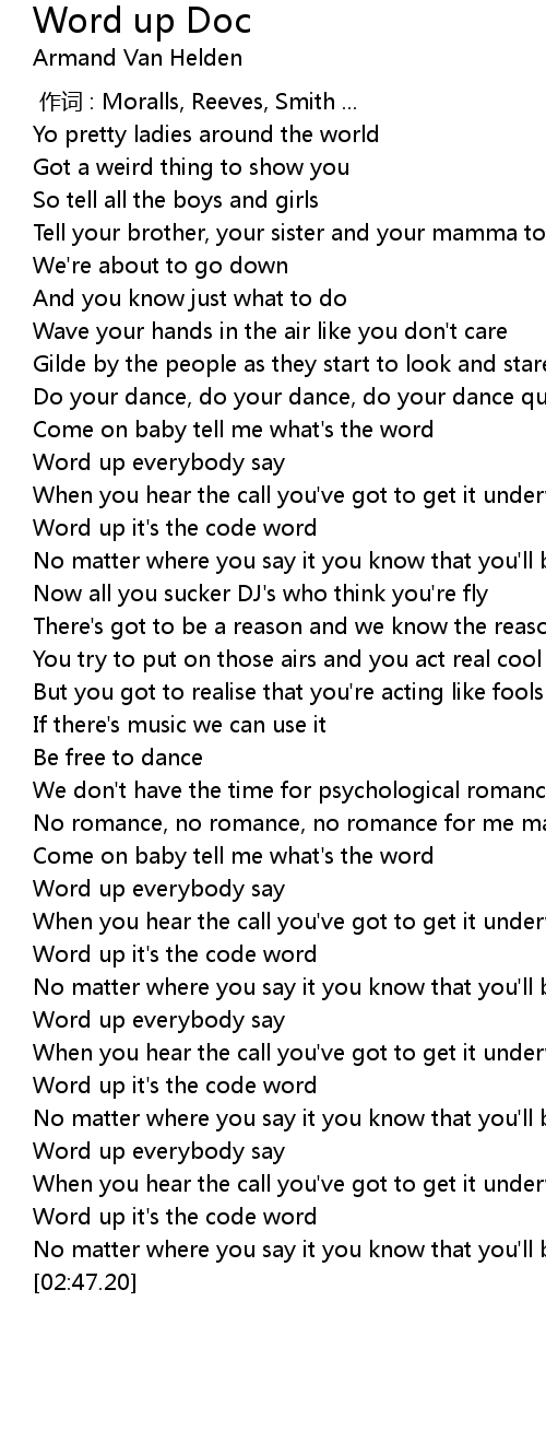 | [00:41.30] | Do your dance, do your dance, do your dance quick mamma |
