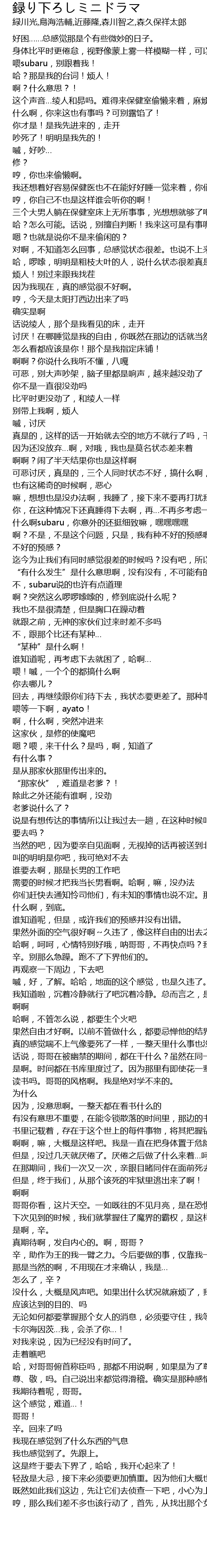 | [00:17.35] | 身体比平时更倦怠,视野像蒙上雾一样模糊一样,可以说是被疾病侵袭的感觉吧。总之状态很差。哈啊,这是什么… |