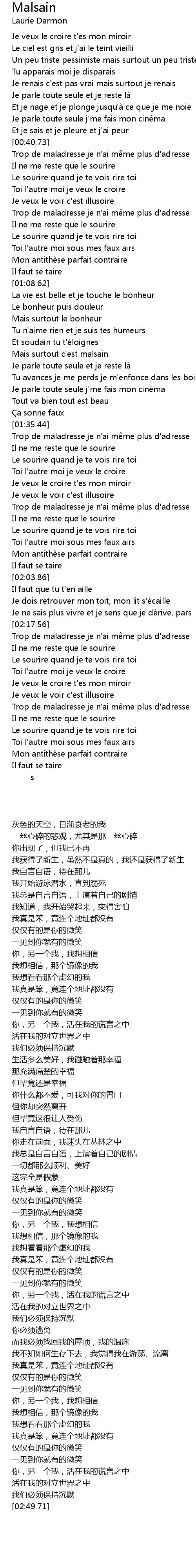| [01:50.57] | Trop de maladresse je n' ai m me plus d' adresse |