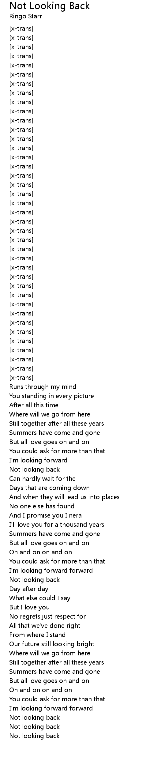 Not looking back |