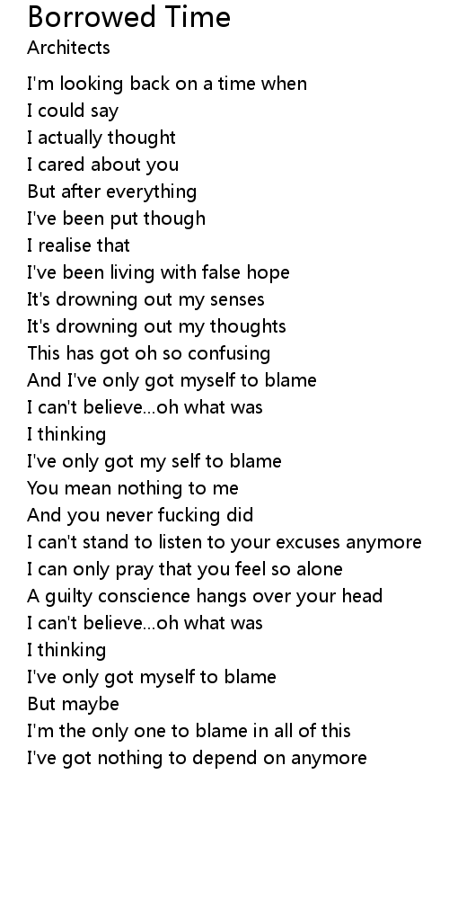 And I've only got myself to blame |