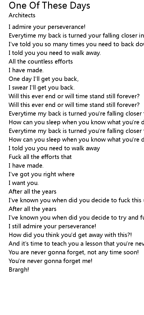 One day I'll get you back, |
