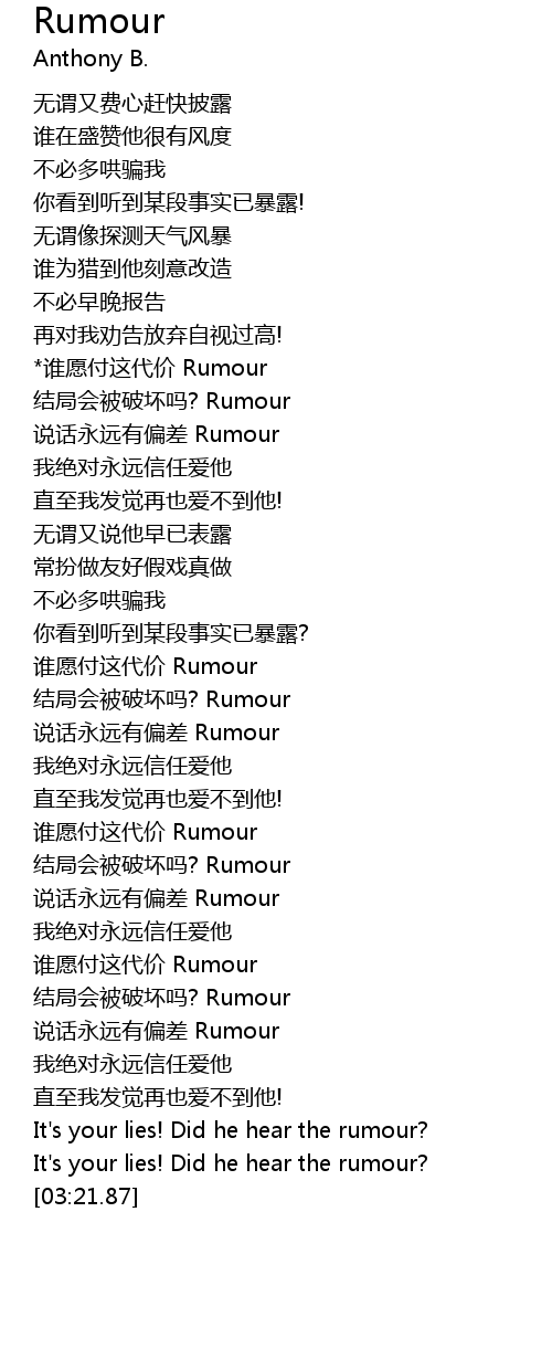 | [03:13.45] | It' s your lies! Did he hear the rumour? |