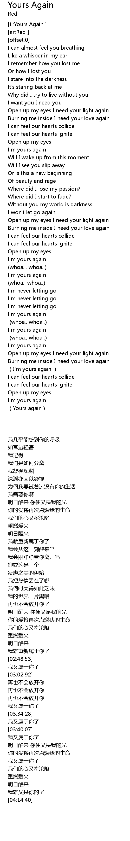 | [03:37.05] | I' m yours again |