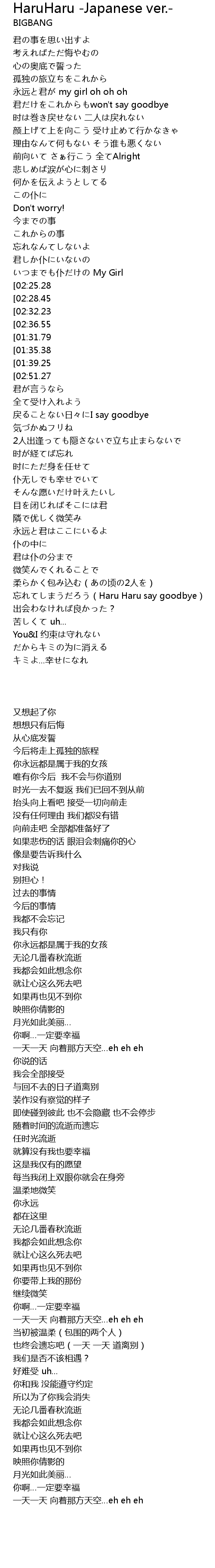 | [03:04.68] | 忘れてしまうだろう(Haru Haru say goodbye) |