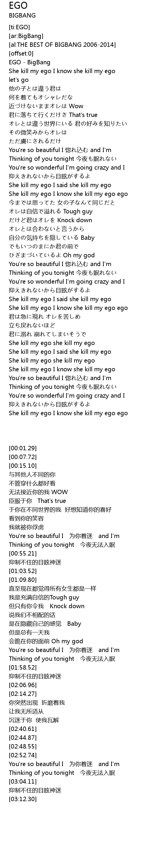 | [00:01.29] | EGO BigBang |