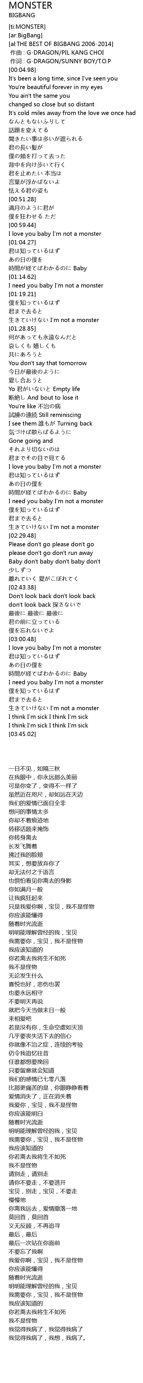 | [00:01.00] | 作词 : G-DRAGON/SUNNY BOY/T.O.P |