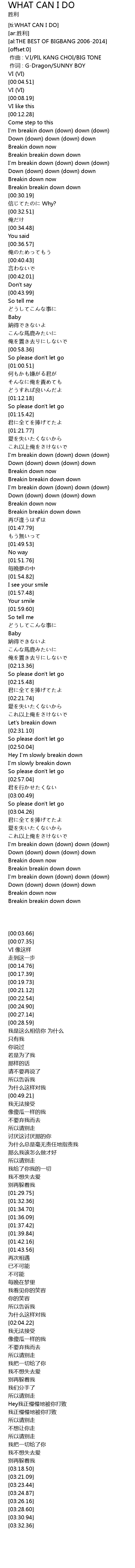 | [00:00.00] | 作曲 : V.I/PIL KANG CHOI/BIG TONE |