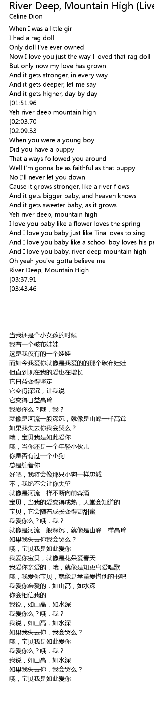 And I love you baby, river deep mountain high |