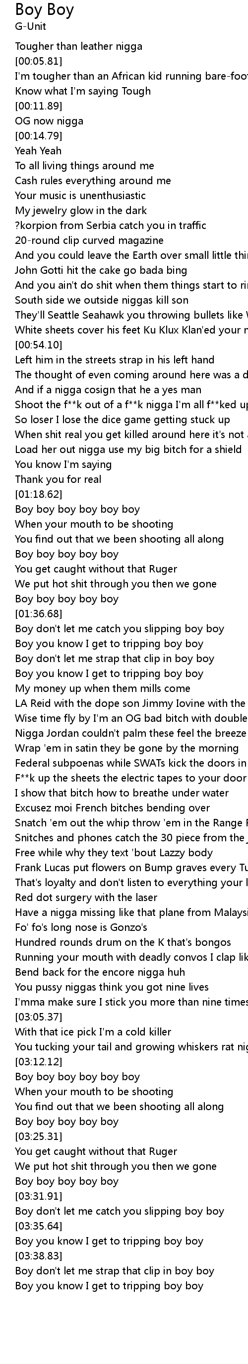 Boy don't let me catch you slipping boy boy |