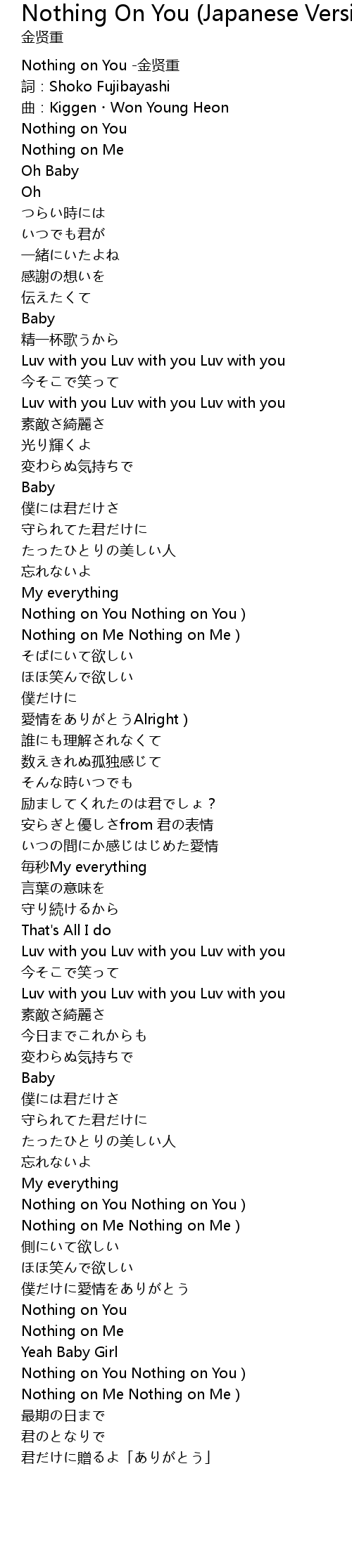 | [03:08.885] | Nothing on Me Nothing on Me) |