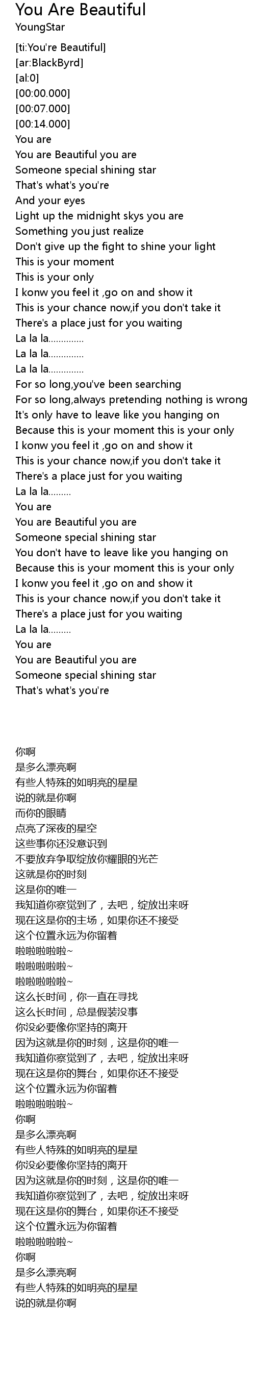 | [00:25.190] | You are Beautiful you are |