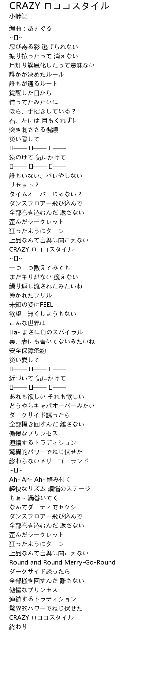 | [03:41.52] | CRAZY ロココスタイル |