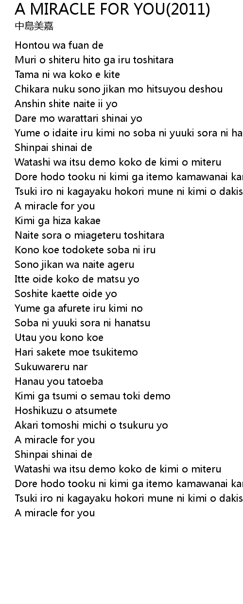 | Dore hodo tooku ni kimi ga itemo kamawanai kara | |