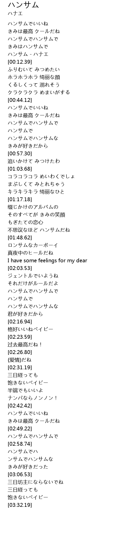 | [00:10.60] | ハンサム - ハナエ |