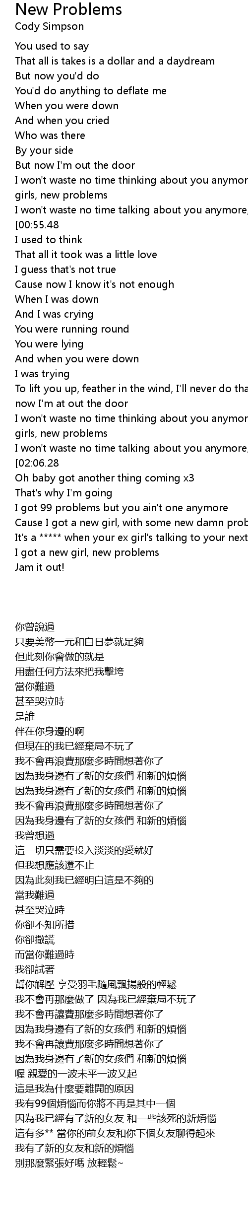 Cause I got a new girl, with some new damn problems |