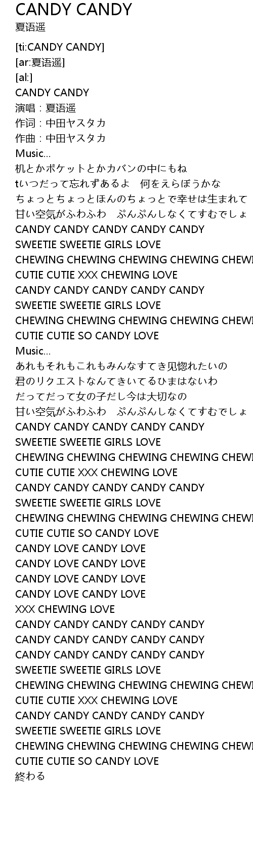 | [00:59.11] | CANDY CANDY CANDY CANDY CANDY |