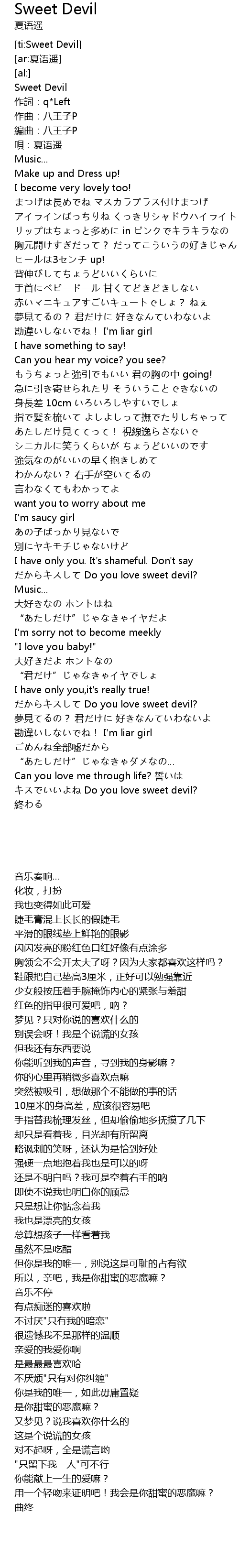 | [03:35.77] | Do you love sweet devil? |