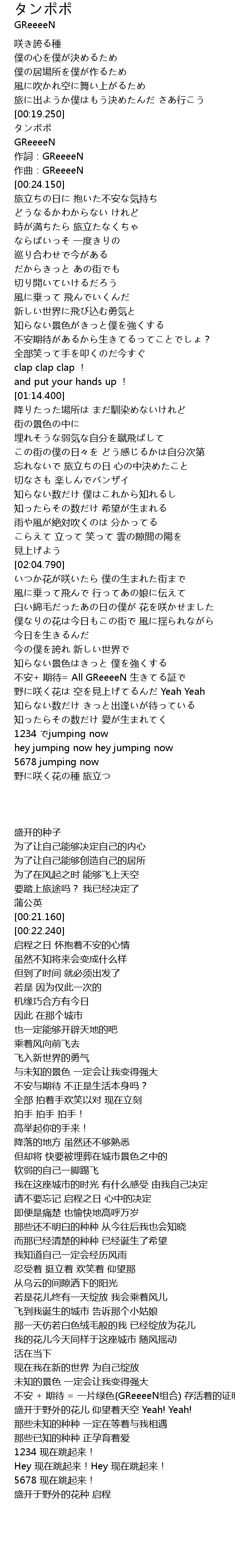 | [00:23.220] | zuò qǔ: GReeeeN |