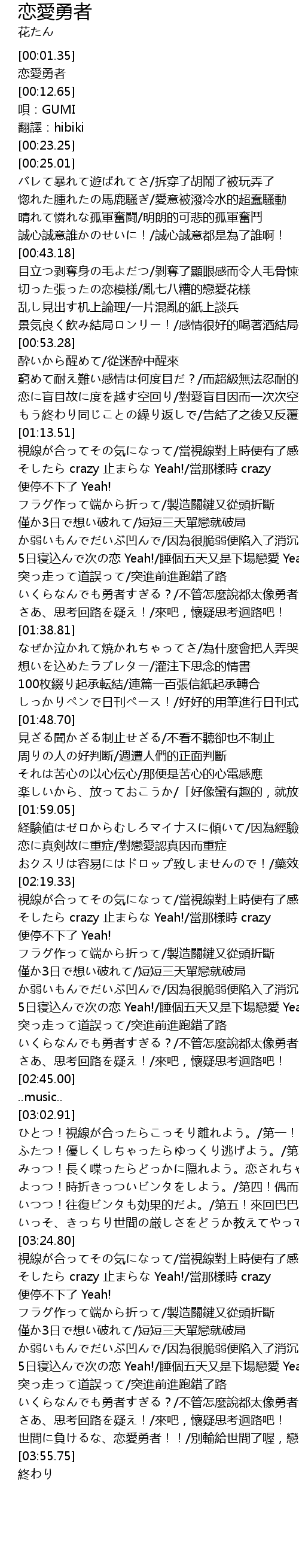| [00:03.20] | 恋愛勇者 |