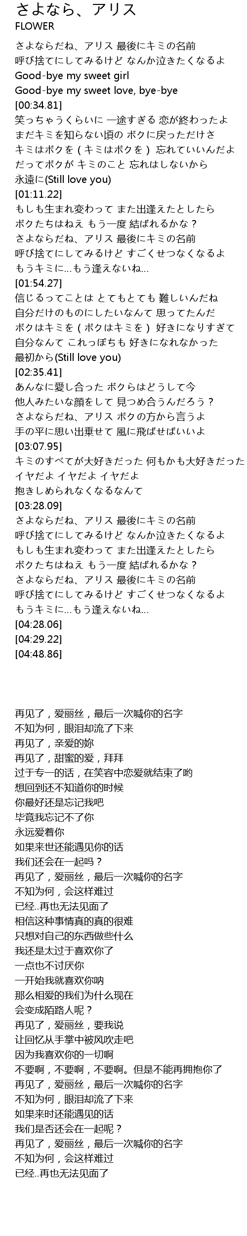 | [04:01.54] | さよならだね、アリス 最後にキミの名前 |