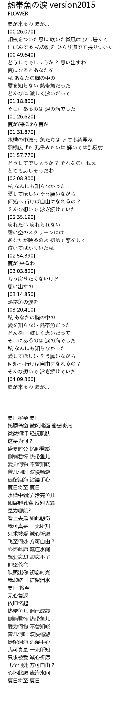 | [01:37.500] | 水槽の中漂う 魚たちは とても綺麗ね |