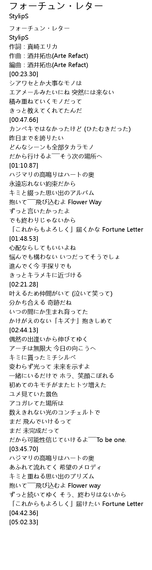| [04:33.68] | 「これからもよろしく」届けたい Fortune Letter |
