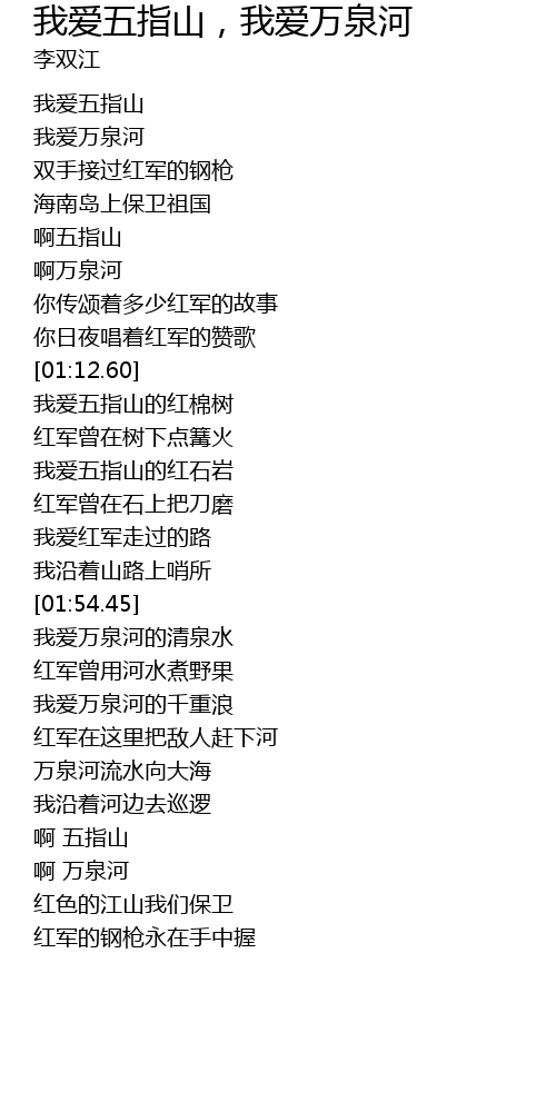| [01:59.69] | 我爱万泉河的清泉水 |