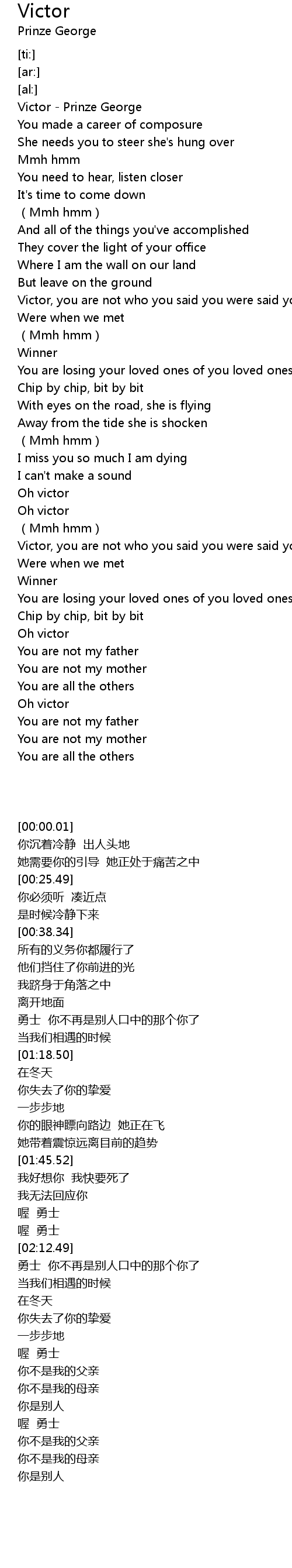 | [02:39.00] | Oh victor |