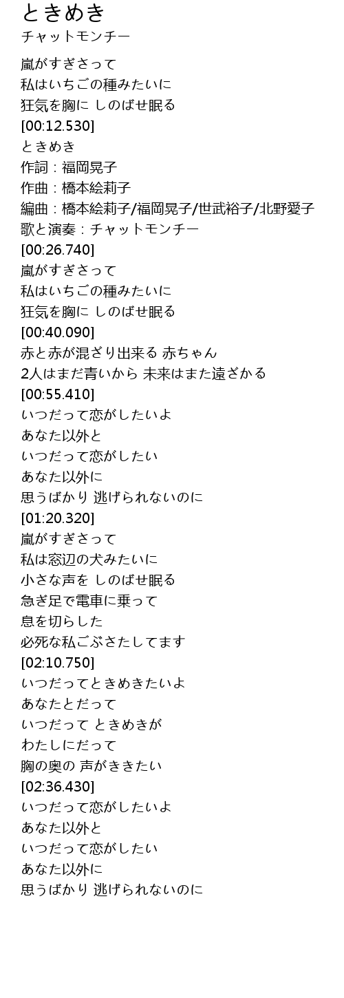 | [00:24.080] | 歌と演奏:チャットモンチー |