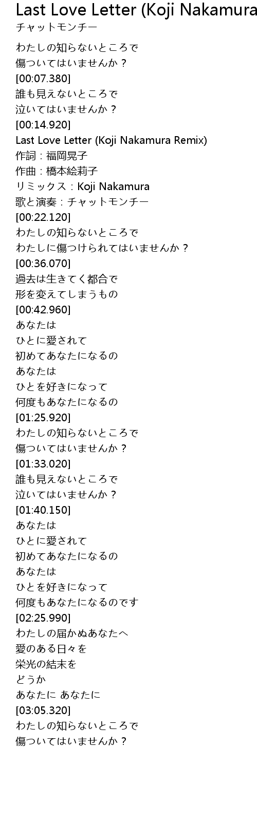 | [00:16.120] | Last Love Letter Koji Nakamura Remix |