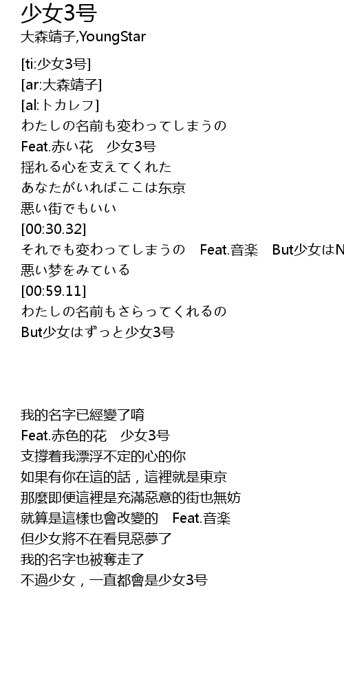 | [01:41.45] | But shào nǚ shào nǚ 3 hào |