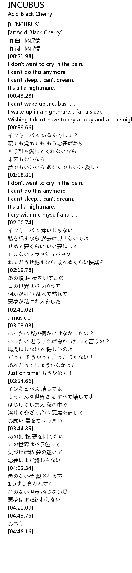| [00:52.48] | I wake up in a nightmare, I fall a sleep |